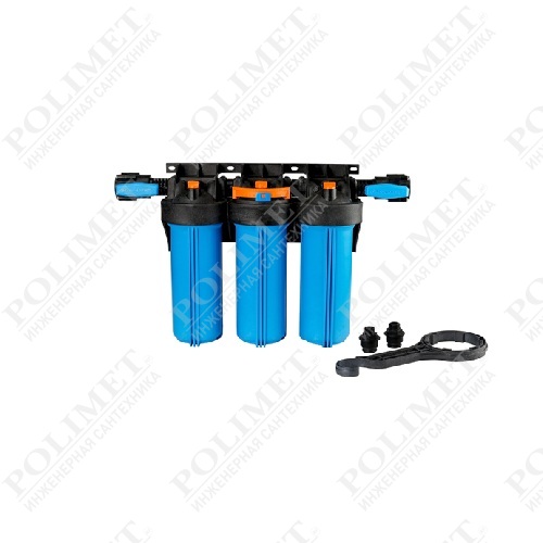 Кронштейн является одним целым с крышкой корпуса фильтра. В корпусе предусмотрены специальные технологические отверстия (пробки) для сброса избыточного давления и слива остаточной воды. В комплект поставки входит ключ