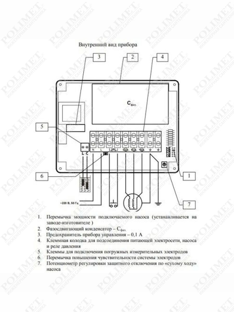 • Прибор SK-701 выпускается для насосов с моторами мощностью 0,37; 0,55; 0,75; 1,1; 1,5 кВт